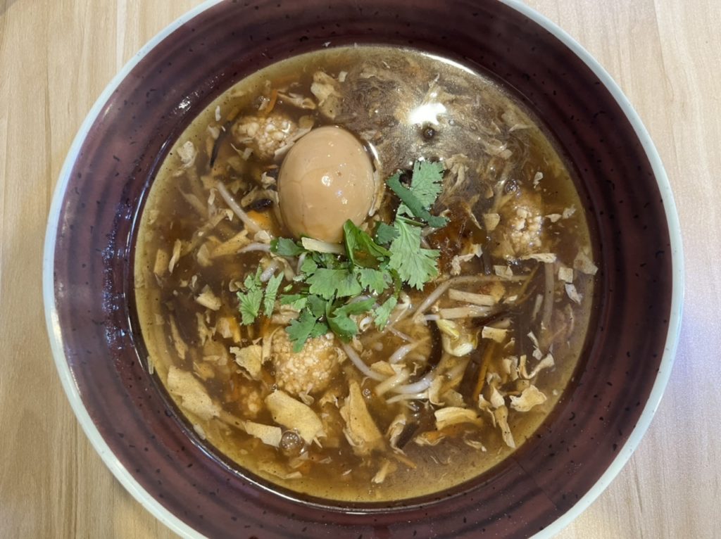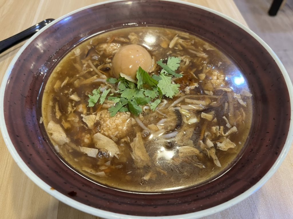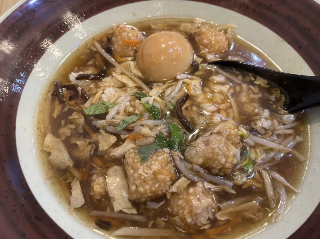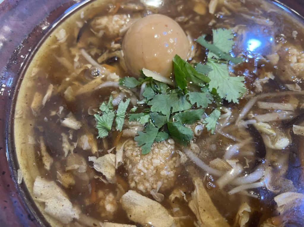 きくらげ、ニンジン、もやし等が入ったあんかけの上に、「香菜(パクチー)」が乗っかっています(パクチーが苦手な人は、注文の時にお店の人に言えばok)。